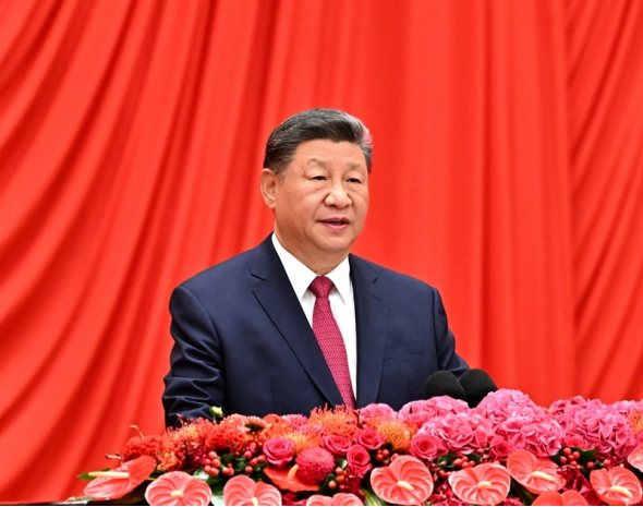 9月30日晚,庆祝中华人民共和国成立76周年招待会在北京人民大会堂举行。中共中央总书记、国家主席、中央军委主席习近平出席招待会并发表重要讲话。新华社记者 燕雁 摄