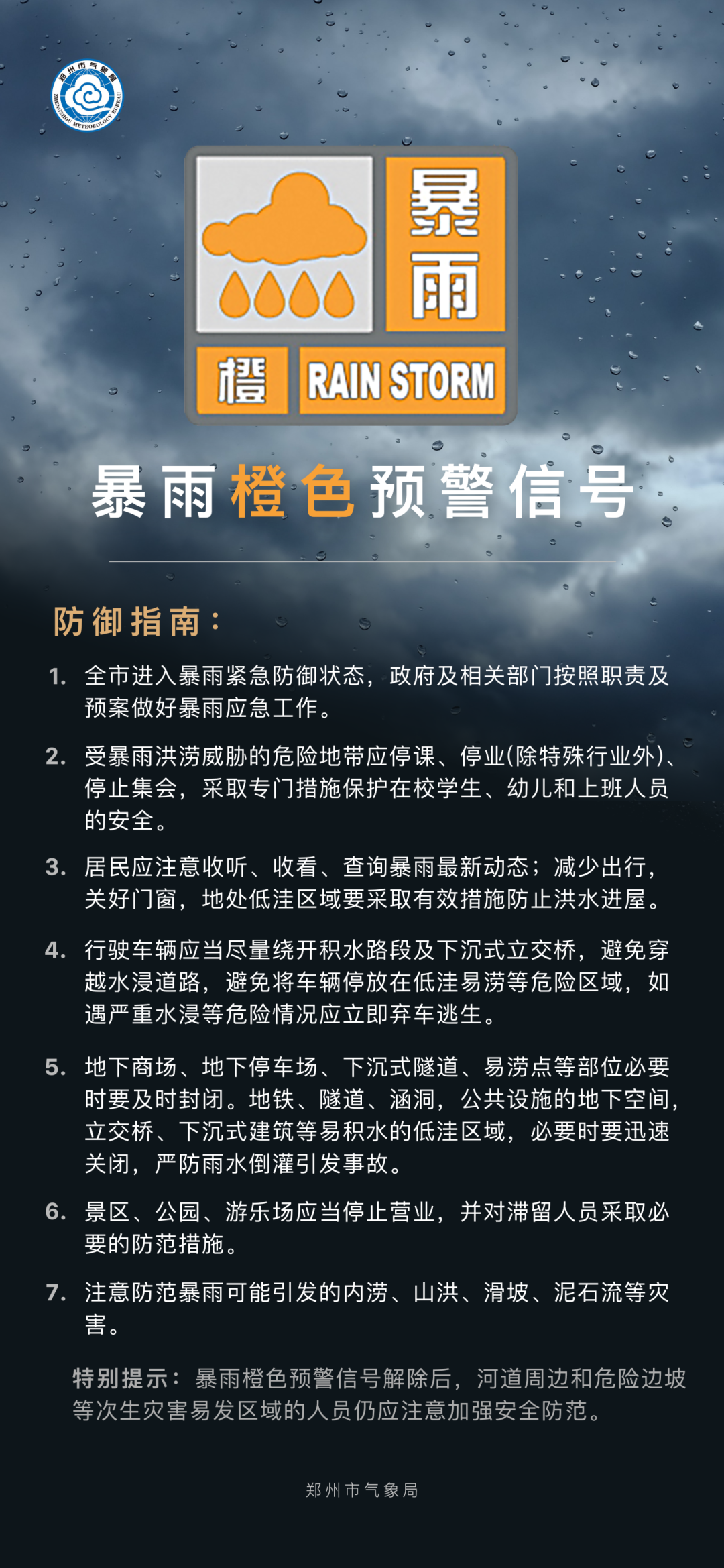 郑州市气象台2025年8月7日12时37分将暴雨黄色预警信号升级为暴雨橙色预警信号:受强对流云团缓慢少动影响,郑州市中原区已出现90毫米以上的强降水,预计未来3小时内,主城区所辖乡镇及街道大部分地区降水持续,并伴有短时强降水、雷暴大风等强对流天气,局部降水量可达70毫米以上,个别站点将超过100毫米。请注意防范强降雨引发的城市内涝等次生灾害。
