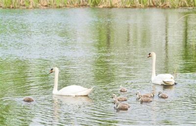 我市良好的生态环境吸引疣鼻天鹅在北龙湖安家,目前郑州的野生天鹅已有百余只。 记者 马健 摄