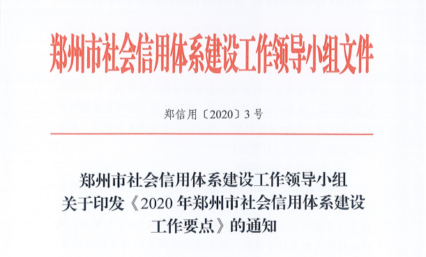 5月9日,大河报·大河财立方记者获悉,根据国家、省、市三级关于社会信用体系建设相关部署,郑州市社会信用体系建设工作领导小组制定的《2020年郑州市社会信用体系建设工作要点》(以下简称《工作要点》)正式印发。