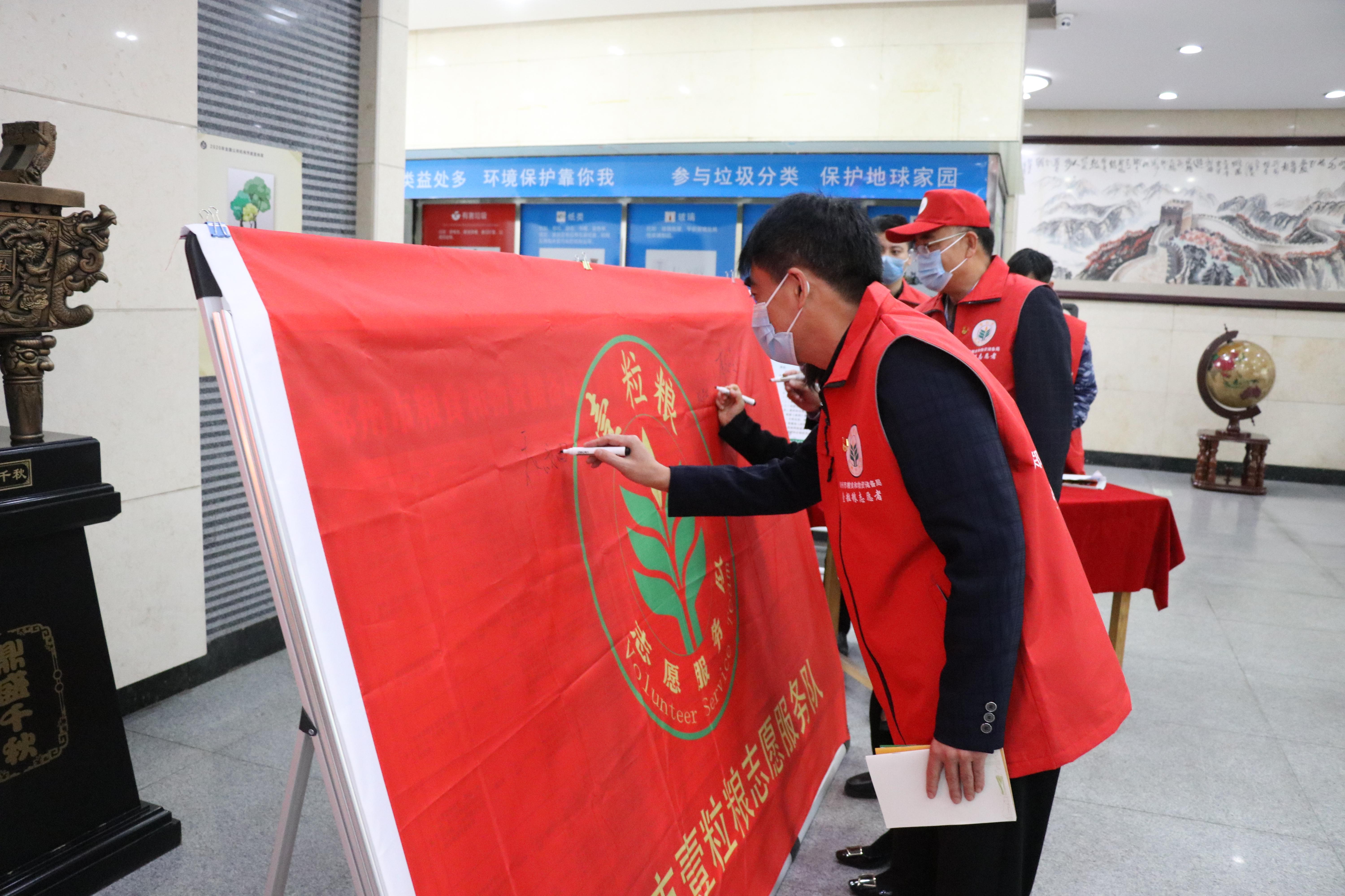 会后,与会志愿服务队员在壹粒粮志愿服务队旗上郑重签名,大家纷纷表示,作为壹粒粮志愿者,将牢记初心使命,牢记服务宗旨,弘扬伟大的志愿者精神,突出行业特色,形成有力的团队优势,为郑州市的文明创建和国家中心城市建设贡献力量。