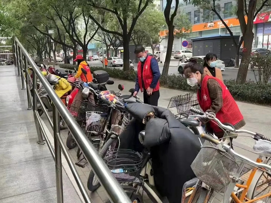 观影结束后,市城管局机关党员干部职工40余人分为7组,分别在嵩山路陇海路交叉口等重要路段、酒店周边开展“绿城啄木鸟”志愿服务活动,规范非机动车摆放、捡拾垃圾、劝导不文明行为等,助力市“双创周”活动。