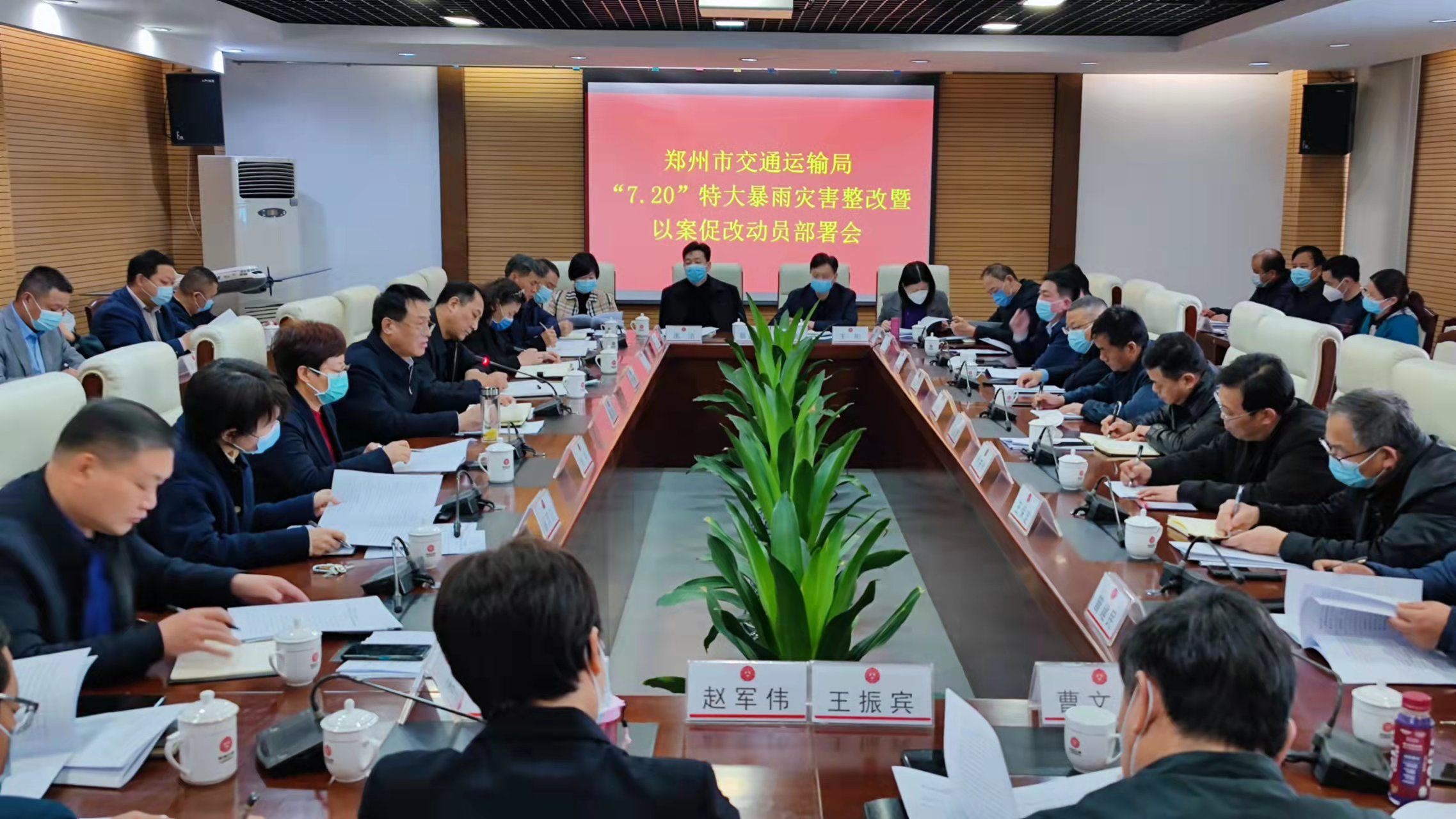 按照市委、市政府部署要求,2月28日下午,郑州市交通运输局贯彻郑州市“7.20”特大暴雨灾害追责问责案件以案促改暨整改落实工作动员部署会在二楼会议室召开,局党组书记、局长翟政主持会议,局属单位党政主要负责同志,郑州交运集团、郑州公交集团、郑州地铁集团运营分公司、郑州中建深铁轨道交通有限公司相关负责同志及局机关中层正职以上领导干部参加会议。