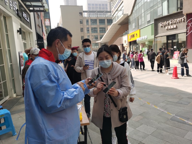 4月7日早上9:00,各志愿者准时到岗到位,根据安排,他们分布在检测点现场的各个岗位,各司其职、各尽其责,全力协助医务人员开展核酸检测工作。他们有的穿上红马甲在核酸检测入口测量体温、查验健康码、行程码;有的监督市民保持安全距离、提前扫码;有的穿上防护服,协助进行信息录入……在抗击疫情核酸检测第一线,志愿者那一抹亮丽的红色与春光相映生辉。志愿者们用行动保障了疫情防控各项工作的有序高效推进,他们在志愿服务岗位上展现着当代志愿者的责任担当。