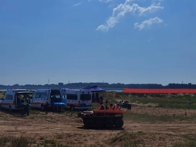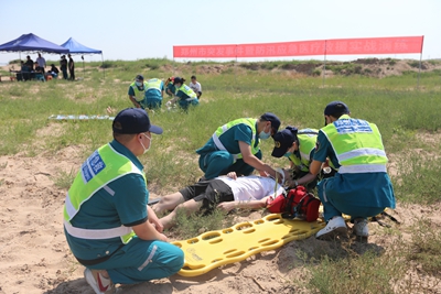 为做好2022年我市防汛医疗卫生救援工作,进一步检验《郑州市突发公共事件医疗卫生救援应急预案》,提升应急医疗救援能力,2022年6月24日,郑州市卫生健康委和郑州市紧急医疗救援中心,组织全市医疗卫生机构医疗卫生救援力量在中牟县黄河滩区,开展郑州市突发公共事件暨防汛医疗卫生救援应急演练。
