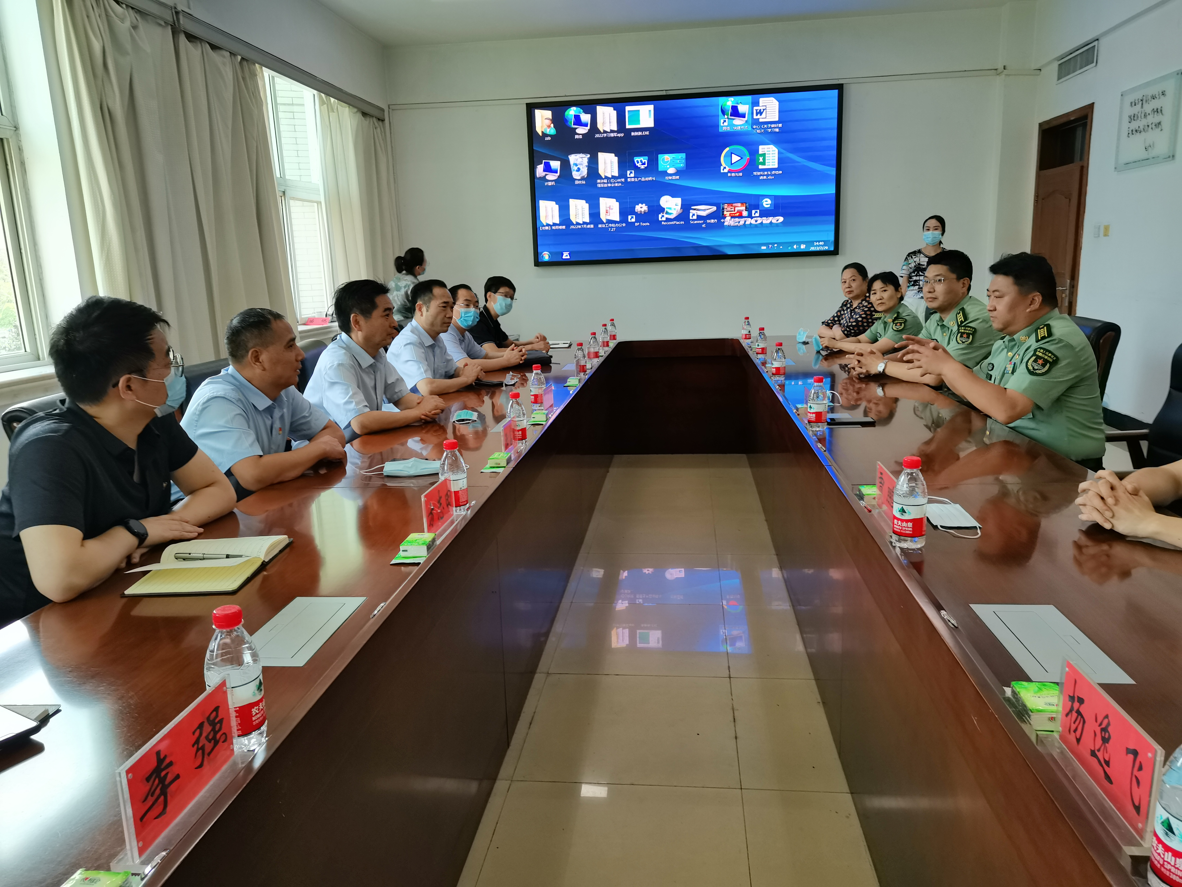 走访期间,杜建强一行详细了解了支队历史沿革、发展历程和光荣事迹。座谈期间,杜建强提出,武警郑州支队历史厚重、责任重大、事迹英勇,支队官兵坚守岗位、默默无闻、甘于奉献。特别是在抢险救灾,处突维稳等方面表现出的绝对忠诚、无私无畏的坚定政治品格和全心全意为人民服务的深厚情怀,值得全市医保系统深入学习和大力弘扬。杜建强表示,市医保系统和武警支队虽然使命有别、任务各异,但服务为民的强烈愿望和使命责任,殊途同归、相融互通。市医保将一如既往为官兵亲属提供优质的医保服务,也希望双方进一步加强交流、互学互鉴,以红色文化滋养初心和使命。
