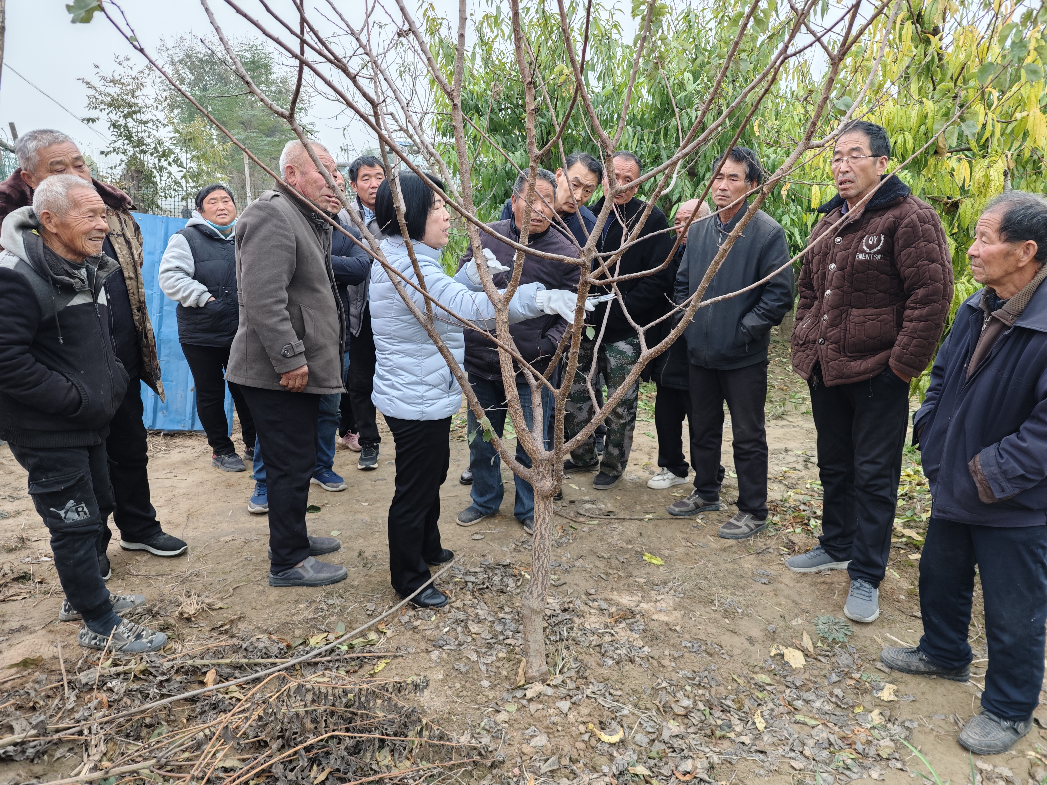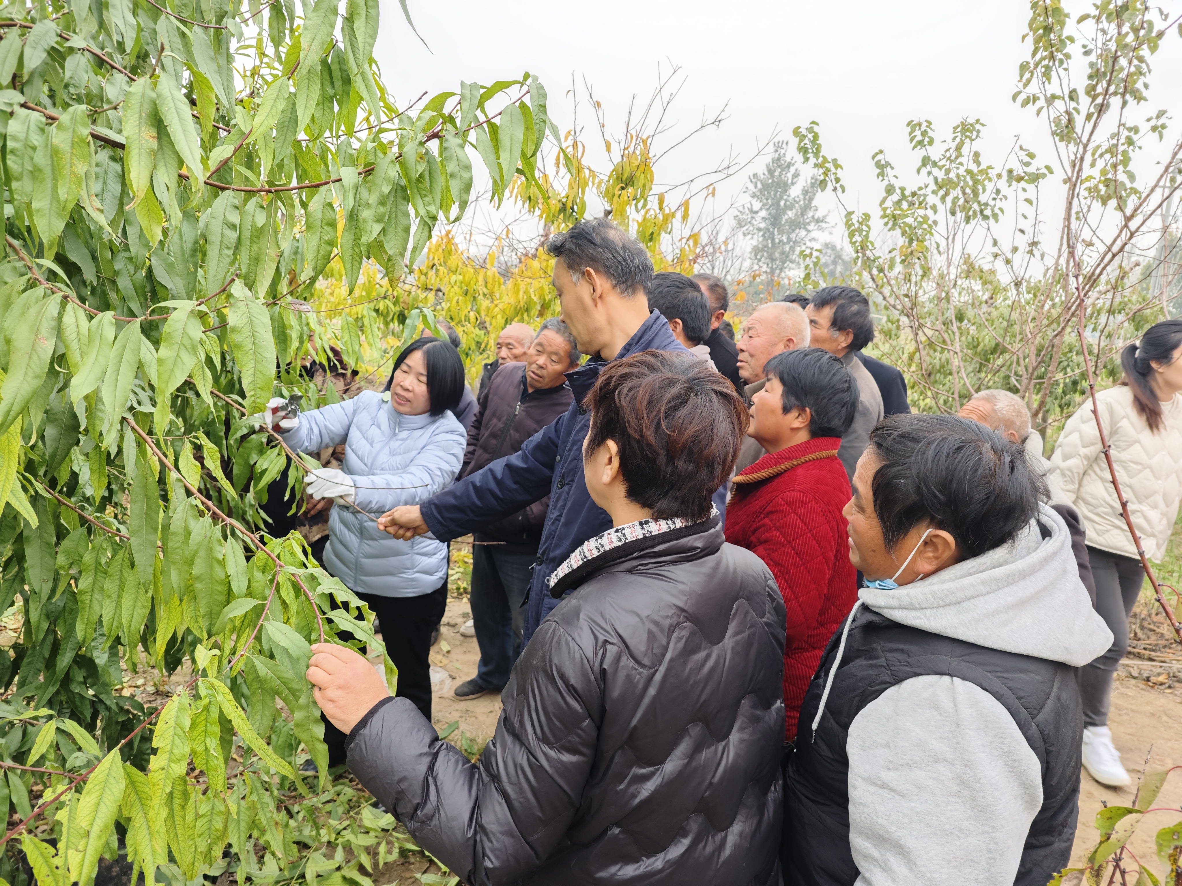 本次讲座主题为《桃树栽培新模式新技术》,授课采用室内讲座和室外实践的形式进行。主要对桃树生产的现状与前景、桃树种植的新理念新模式以及栽培新技术等内容进行讲解,并在室外桃树种植场地内对林农们进行手把手桃树修剪技术指导。
