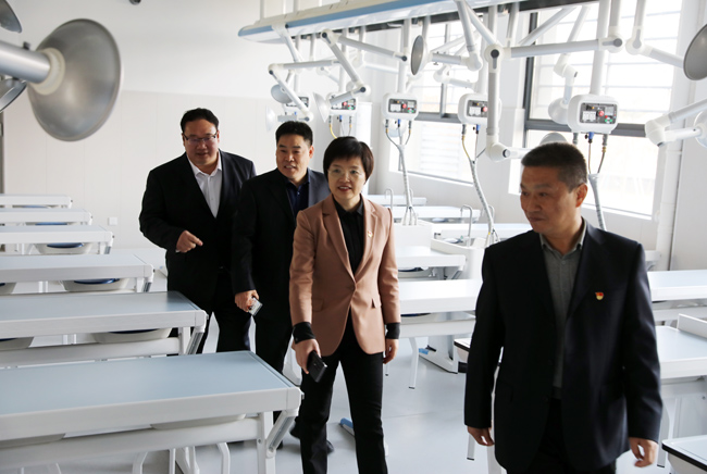 王丽娟依次来到学校实验室、教室、食堂等地了解学生在校的学习和生活情况。
