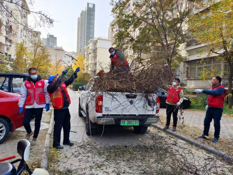 活动过程中,志愿者们出动专业清运车,利用高枝剪、垃圾夹、大扫帚等工具奋力清扫垃圾杂物,合力铲除杂草乱枝,一趟趟的清运枯枝断枝,不畏辛劳不畏严寒,充分发扬“奉献、友爱、互助、进步”的志愿精神,切实改善百姓居住环境。