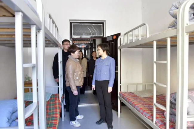 王丽娟认真查看学校宿舍住宿情况