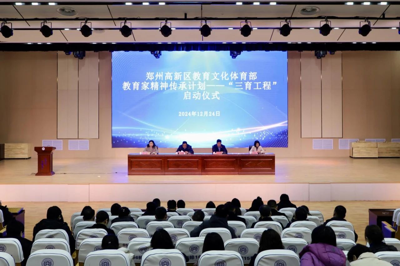 12月24日上午,郑州高新区教育家精神传承计划——“三育工程”启动仪式在郑州高新区行知中学举行,深入弘扬教育家精神,有效发挥名校长、名班主任、名师“头雁效应”,着力打造顶尖教育人才聚集地。