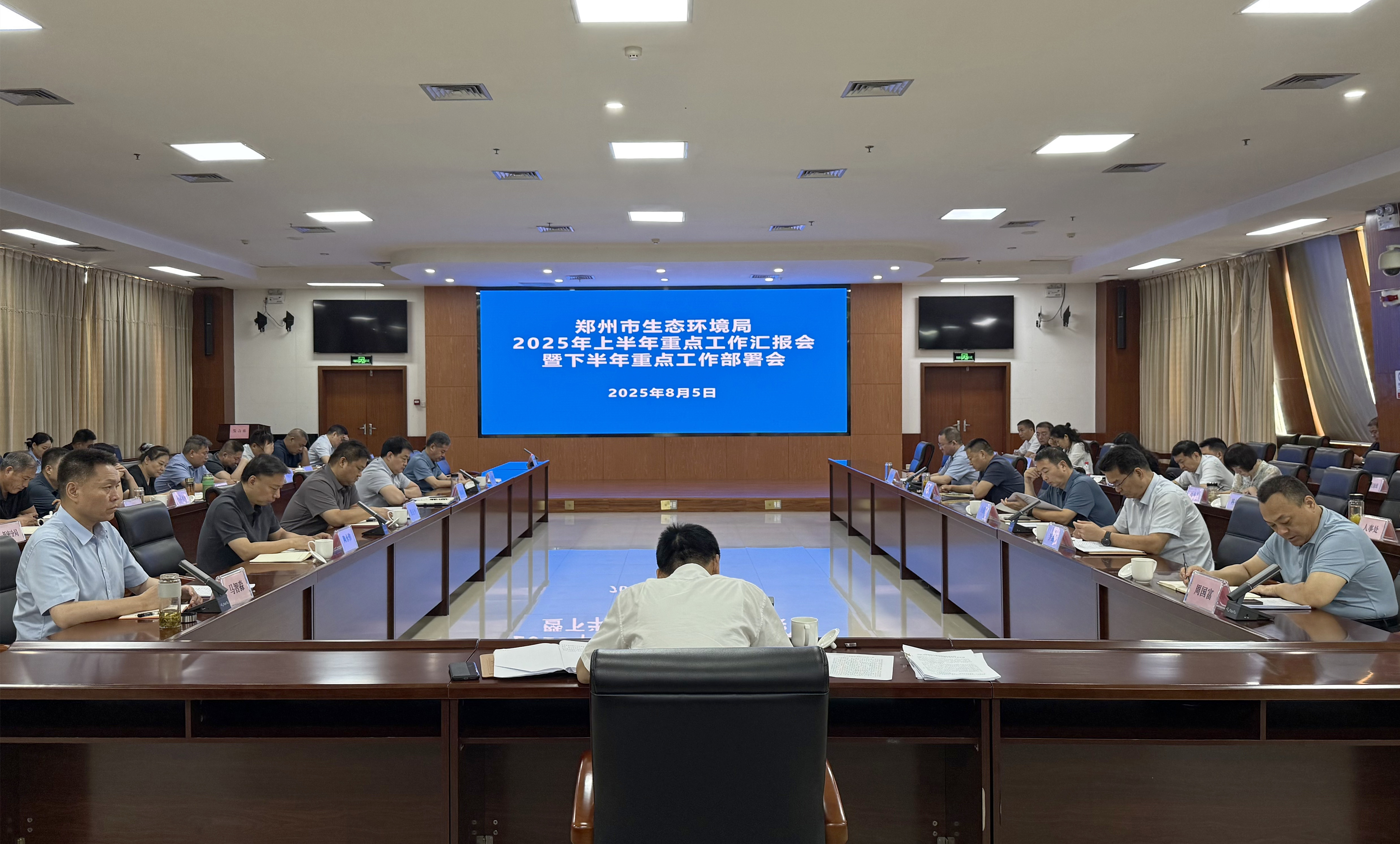 8月5日,郑州市生态环境局召开2025年上半年重点工作汇报会暨下半年重点工作部署会。会议深入学习贯彻习近平总书记在河南考察时重要讲话精神,全面落实全市着力建设现代化产业体系暨下半年经济工作部署会议精神,总结上半年工作开展情况、查找工作中的问题不足、部署下半年重点工作。市生态环境局党组书记、局长董建山主持会议并讲话。