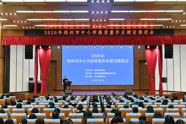为深入贯彻落实《教育强国建设规划纲要(2024-2035年)》和教育部《关于进一步加强中小学日常考试管理的通知》精神,聚焦“双减”背景下作业建设与考试管理,推动基础教育质量持续提升,2026年1月22日上午,郑州市2026年中小学高质量作业建设推进会在金水区优胜路小学孟源校区召开。