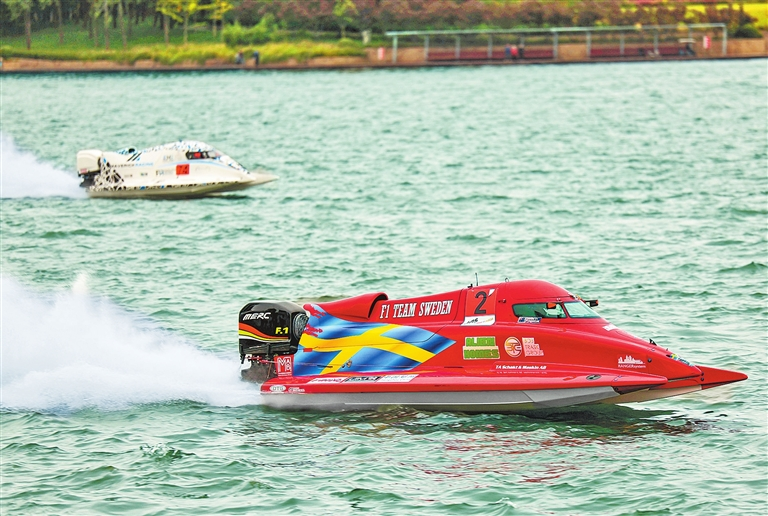 10月10日,2025年世界F1H2O摩托艇锦标赛中国郑州大奖赛在郑东新区起航。来自全球的10支顶级赛队、20位顶尖赛手齐聚龙湖,用极致速度与精准操控,在波光粼粼的水面上演“水上狂飙”的巅峰对决。记者 邓放 摄