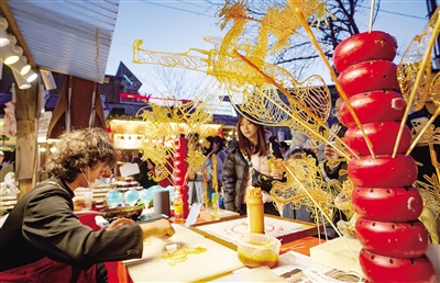 郑州记忆·油化厂创意园,游客在吃美食、赏花灯、看非遗 记者 马健