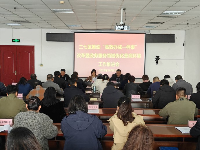 为进一步深化“高效办成一件事”改革,优化全区营商环境,10月31日上午,二七区召开推动“高效办成一件事”改革暨政务服务领域优化营商环境工作推进会。区直相关部门、镇(办)分管政务服务工作负责同志及便民服务中心负责人参加会议。